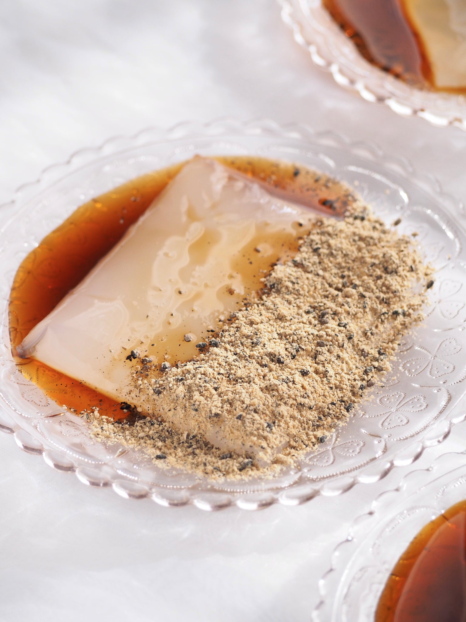ベースとなるきな粉には、香り高さで知られる「丹波種黒豆きな粉」を使用。香ばしい風味が格別で、GINZA芭蕉堂のわらび餅が“唯一無二の味わい”と言われる理由です。