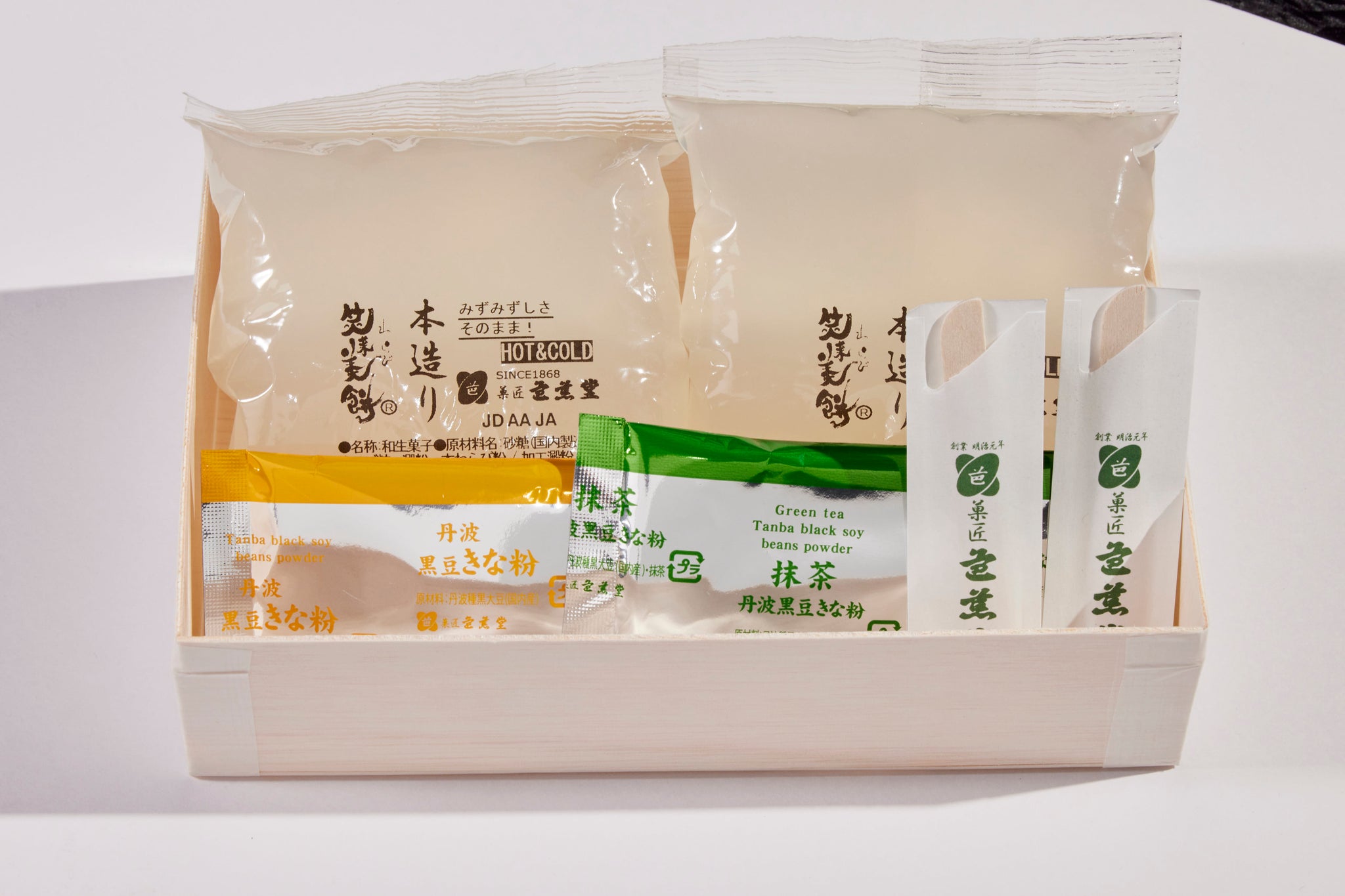<木箱>本造りわらび餅 きな粉 とココアセット